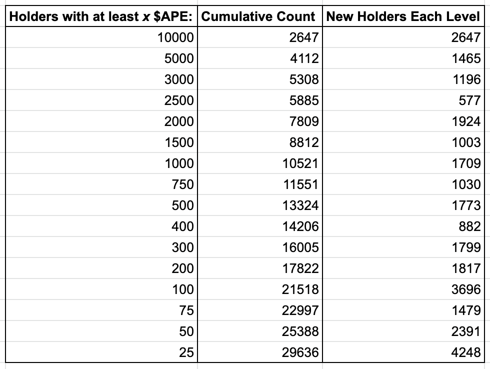 There are ONLY 2.6k wallets with 10k+ $APE and 7.8k with 2k+.
