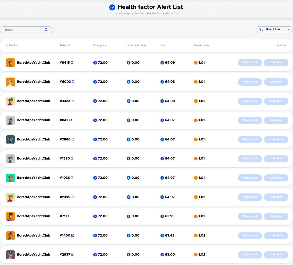 The first BAYC liquidation auction began this morning and there are currently 9 BAYC within a couple of % points of going to auction.