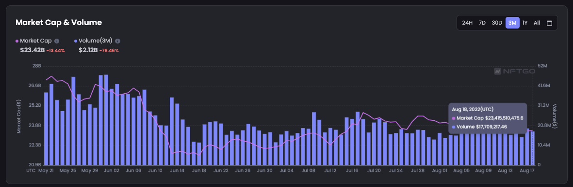 BAYC has 1% of the volume/MCAP ratio of ETH and a much greater bid/ask spread (ie, way less liquid)... yet their open interest/MCAP is similar (~3.5%).