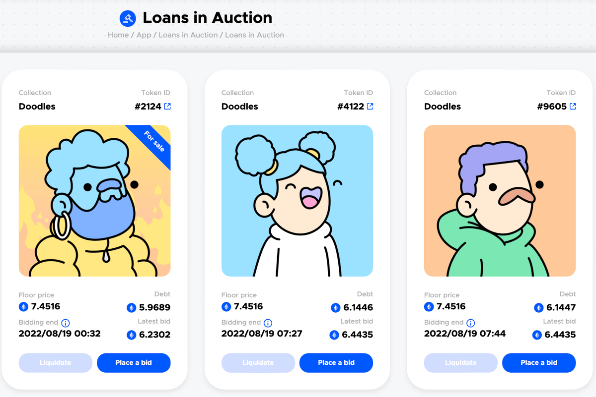 Furthermore, many of these NFTs have similar liquidation levels as they were taken at the same time.