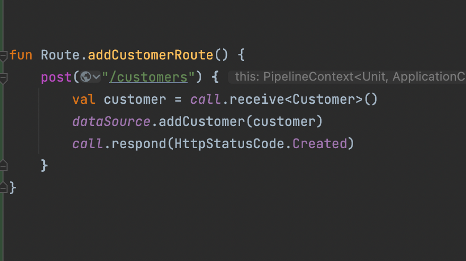 call.receive waits the exact json body with all the customer properties i.e id, firstName, lastName and email.