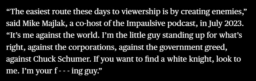 Which melds well with the next point. In the United States, these 9 youtubers fostered an "us vs them" mentality among their audience. This quote from a co-host of the Impaulsive podcast illustrates the point well.
