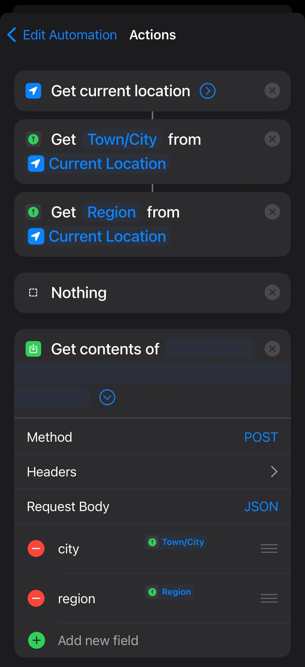 (note that I'm only sending the name of the city and region instead of full coordinates, no one should ever get access to the database, but you never know!)