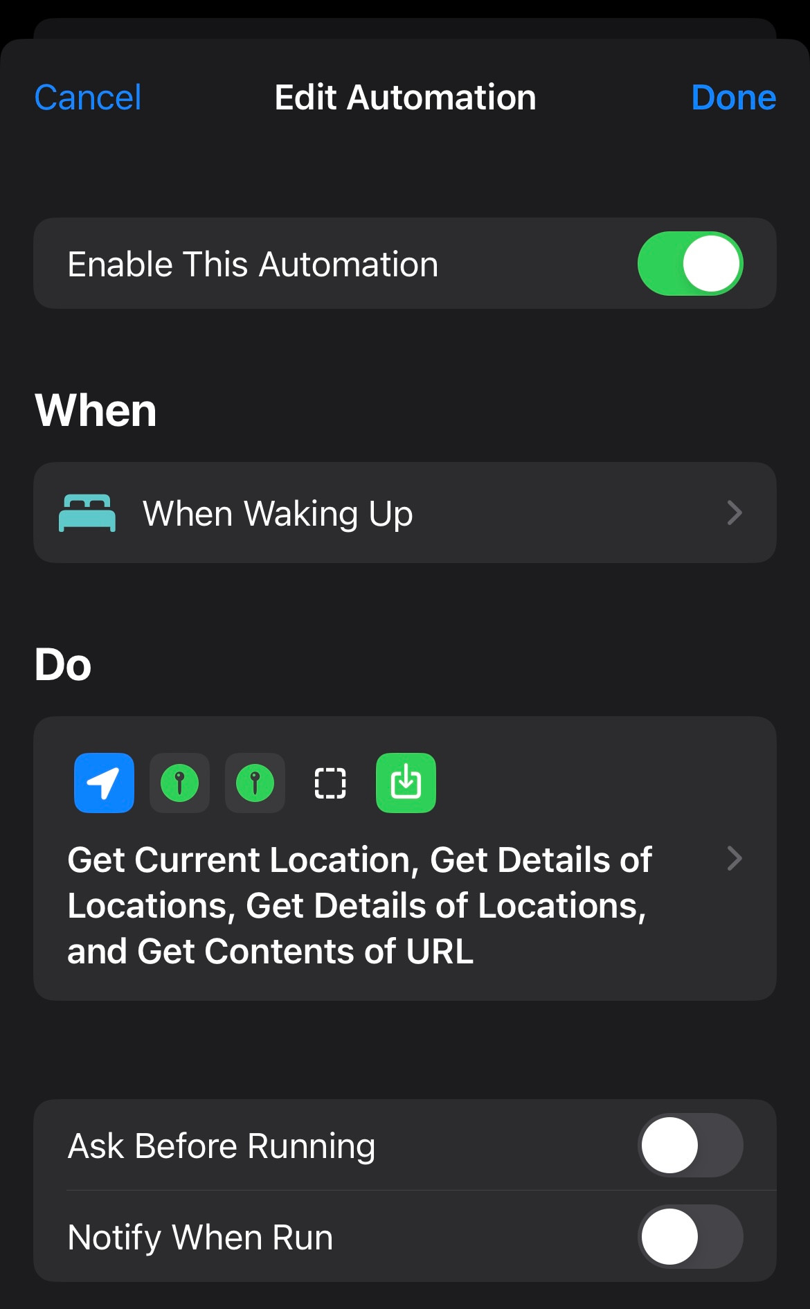 There's probably a lot of ways to do this, but I went for the dumbest (and simplest) one: an iOS shortcut that runs every day after I wake up.