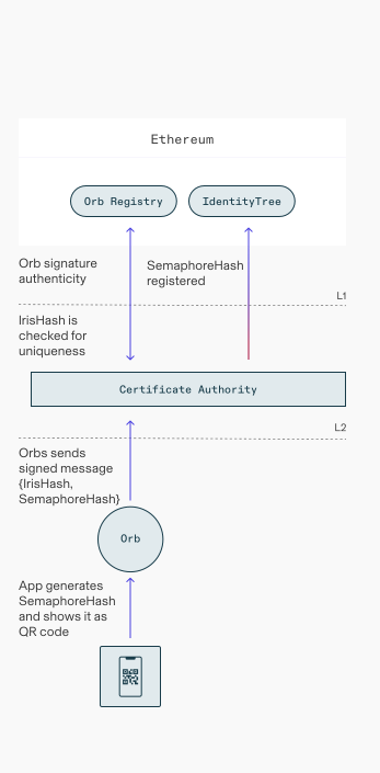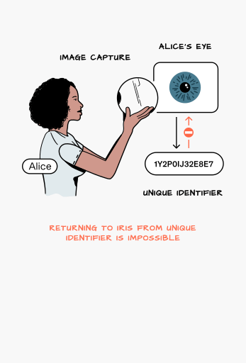The Orb scans a bunch of metrics to ensure that you’re an actual, living human (proof of liveliness) and your iris and uses them to create a unique string, used to check wether you’ve already claimed your coins.