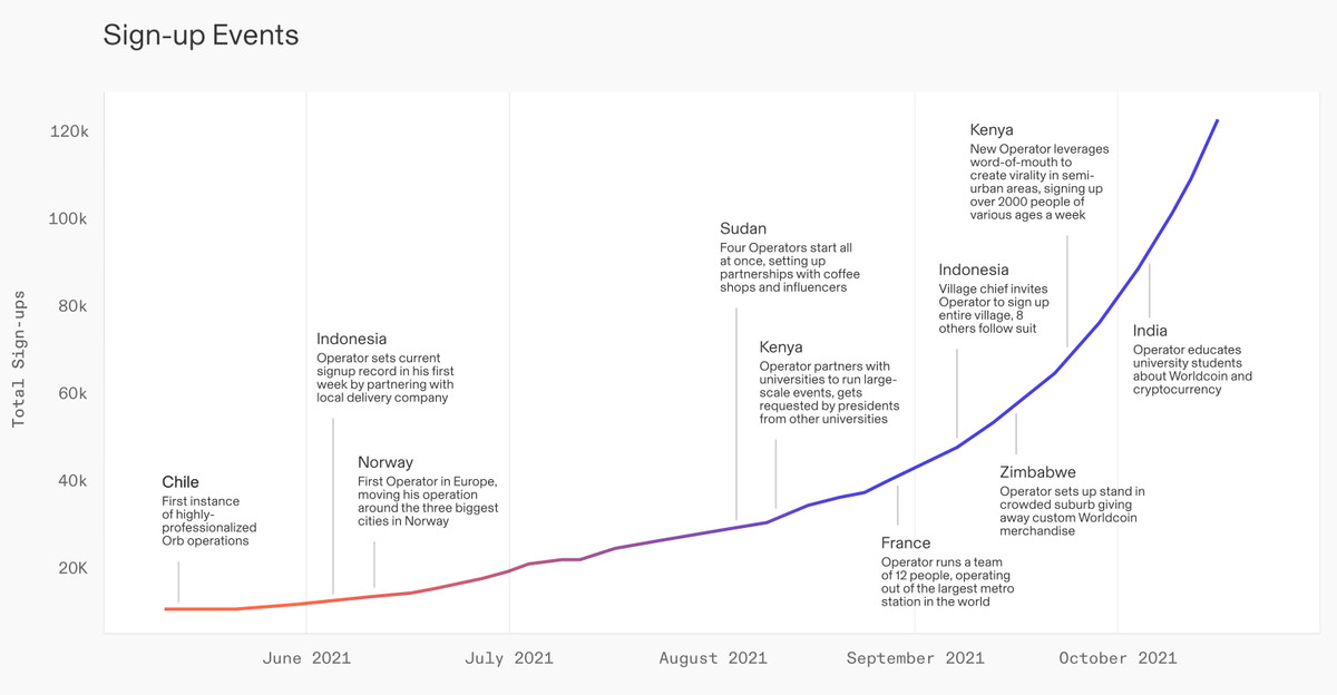 The Worldcoin project has already onboarded over 130k users since May, with only 30 prototype orbs. The plan is to ramp up orb production, and have hundreds out there soon.