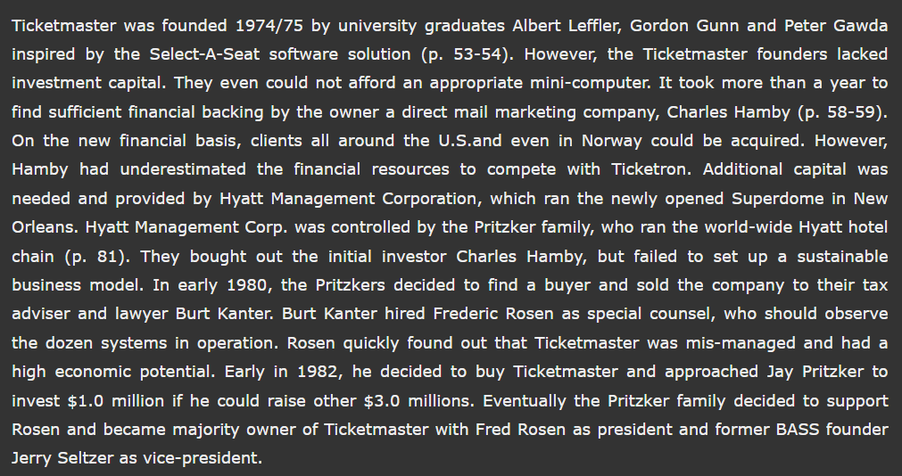 (This story *probably* starts with the CIA money launderer who bilked Creedence Clearwater Revival in the 70s and bought Ticketmaster in 1981, but..)