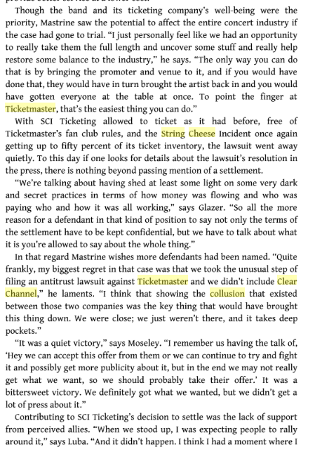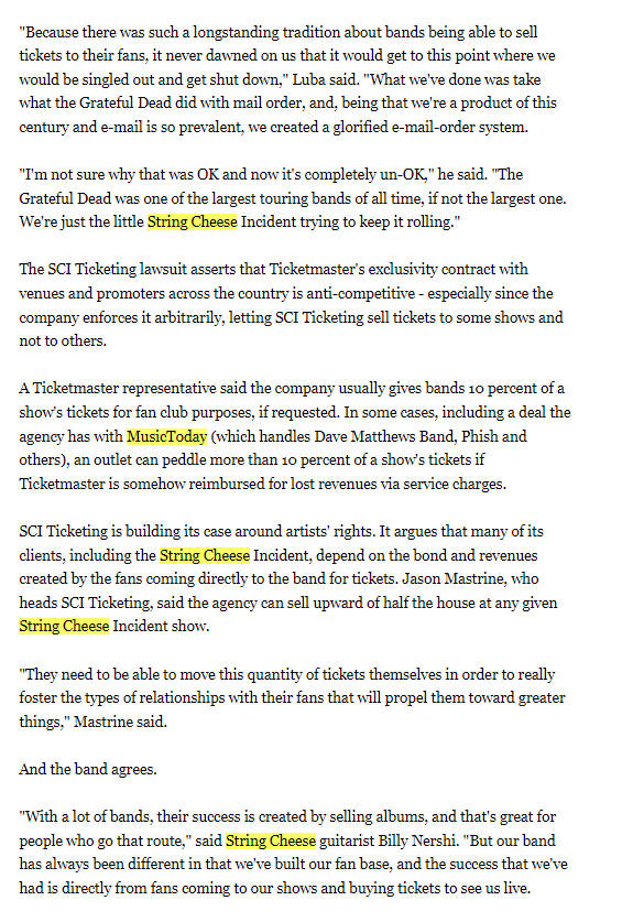 BUT, once the Evil Empire swallowed the DMB's fanclub company, a little band called the String Cheese Incident @SCI_Official that had been selling concert tix directly to fans found itself frozen out by Ticketmaster's exclusive relationship with MusicToday.