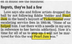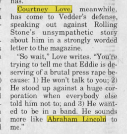 Courtney Love however was not fooled. She repeatedly defended Eddie Vedder. Of course she fucking did.