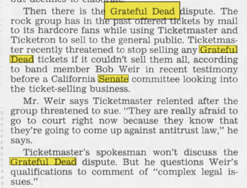 For now let's start with the @gratefuldead, whom Ticketmaster threatened to boycott from captive venues in 1991 if the band didn't allow TM to sell ALL their tix.