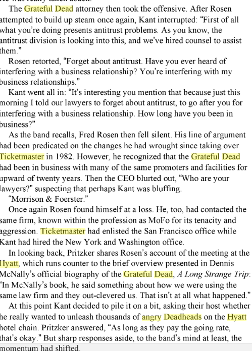 Ticketmaster czar Fred Rosen backed down and let the Dead have their 50%. This became known as the Grateful Dead Exception. And it would NEVER, he swore to himself, happen again.
