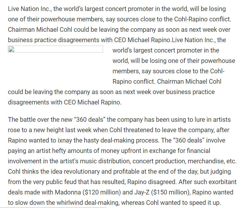As CD sales cratered, Cohl started doling out 9-figure "360" contracts to @madonna, @ladygaga, @sc etc.