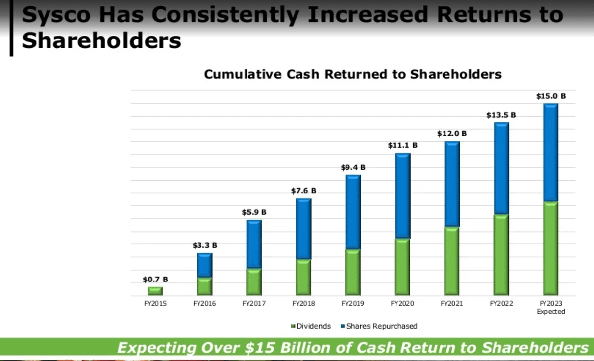 No prizes for guessing how Sysco spent the cash it saved axing workers. They went shopping! For small companies & Sysco stock. Also, dividends. Management just boasted to an investor conference that it expects to have "returned" $15 BILLION to shareholders by the end of the year.