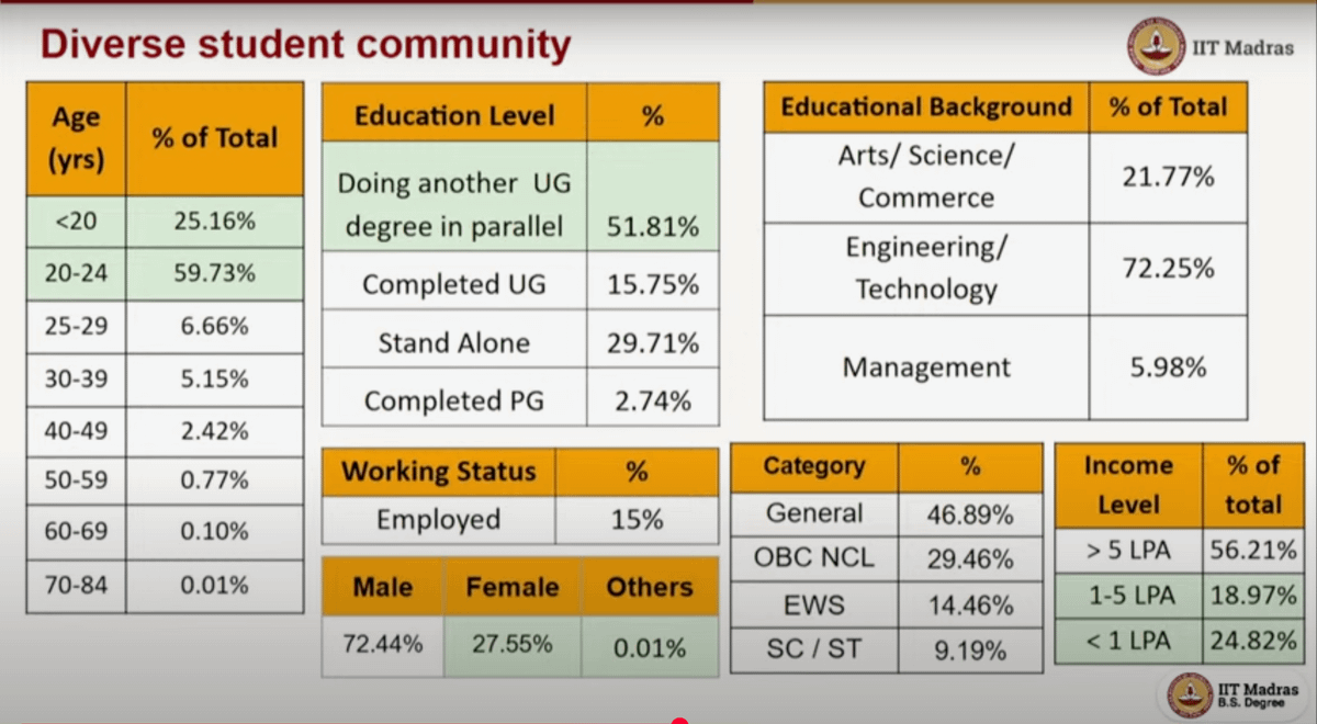 Back from #Paradox2025 at IITM! I have always had this sense that their online BS program attracts a diverse audience and "democratizes access", and it was nice to see this feeling being quantified in the numbers that were presented in the opening ceremony of the convocation. ๐งต