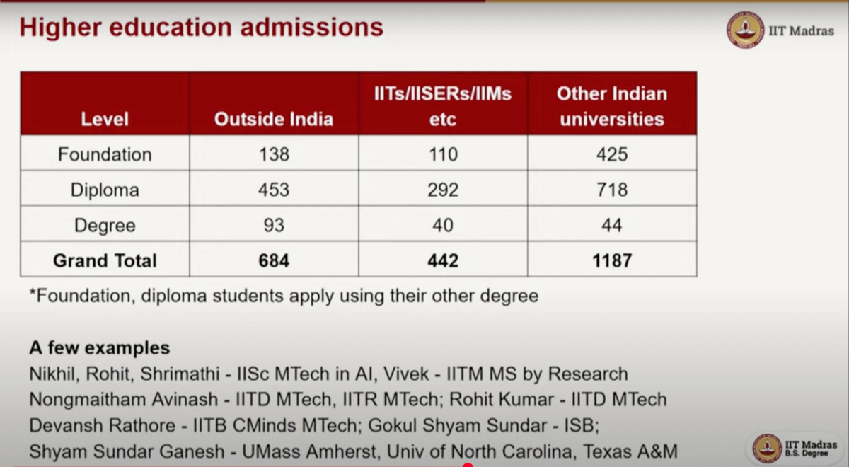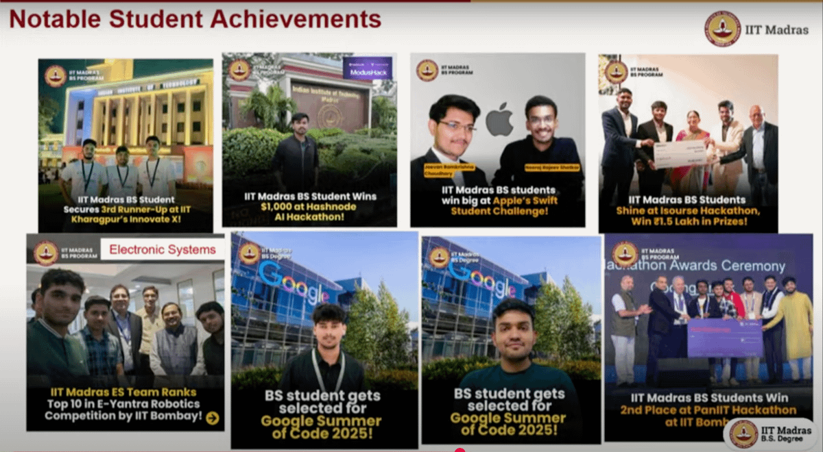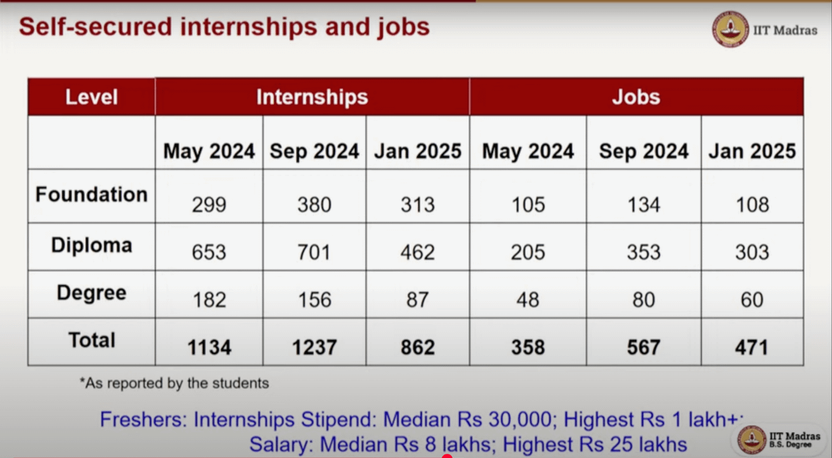 IITM is actively partnering with various organizations to do more of this sort of thing -- offline courses, workshops, internships, etc. The program opens doors to a bunch of such opportunities. This brings me to the other question, of how well people are doing in the program.