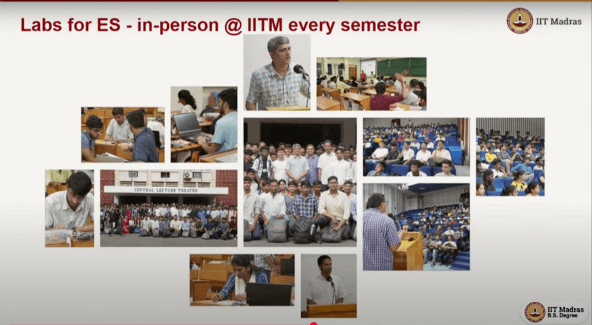 When possible, the online programs have offline features. For example, the ES program is smaller than the DS program, and they actually run offline labs at IITM every term.