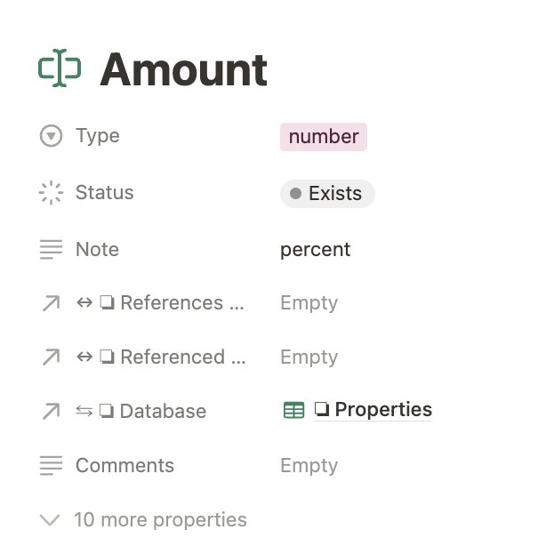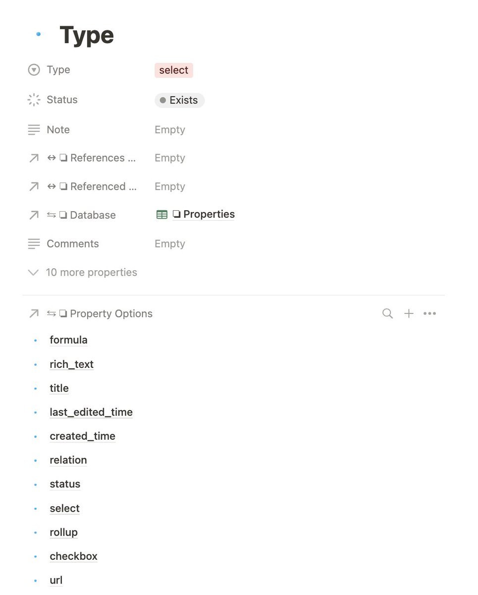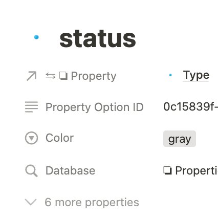 Unlike SQL where you use DESCRIBE; or unlike spreadsheets XML schema, notion databases get complicated fast.