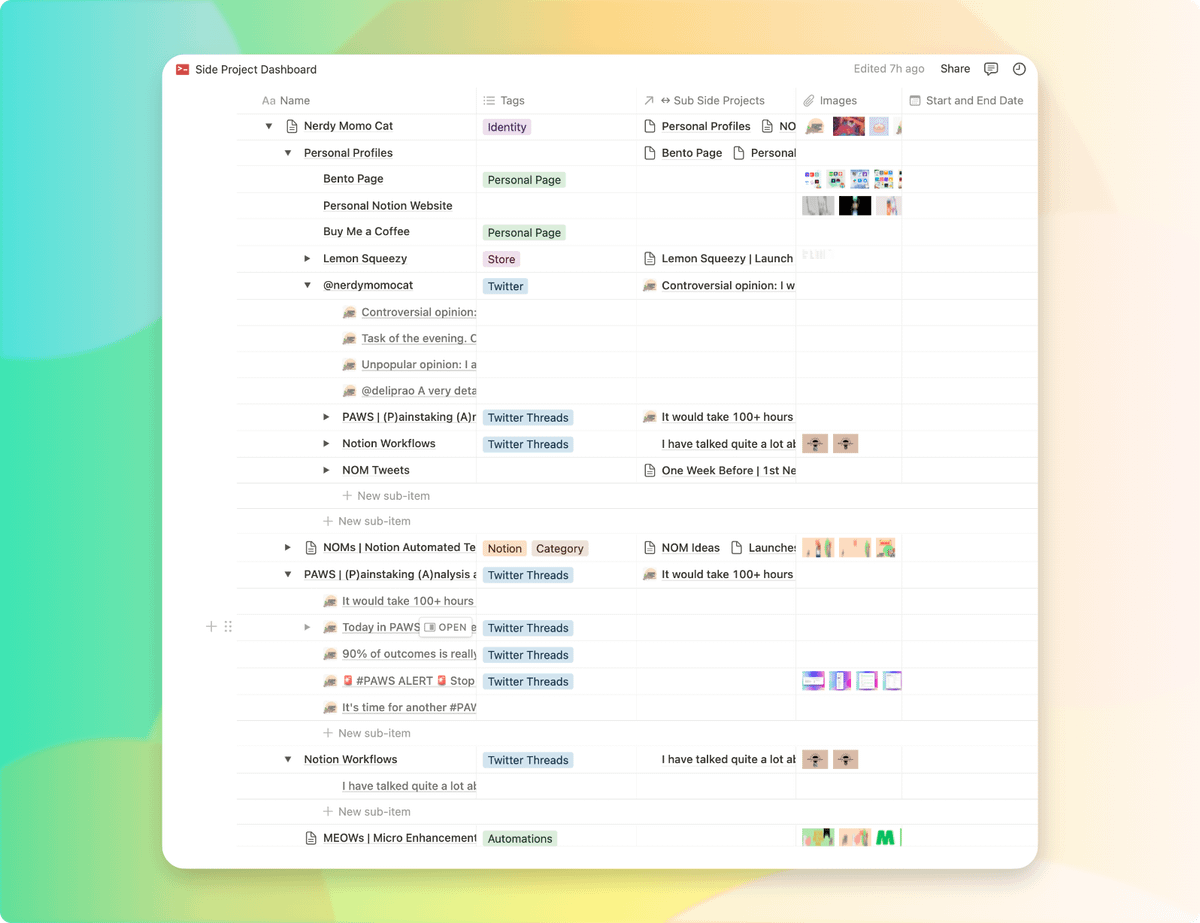 a. I created a side projects database in @NotionHQ and stored all the designs in there related to all the series, profiles, websites etc.