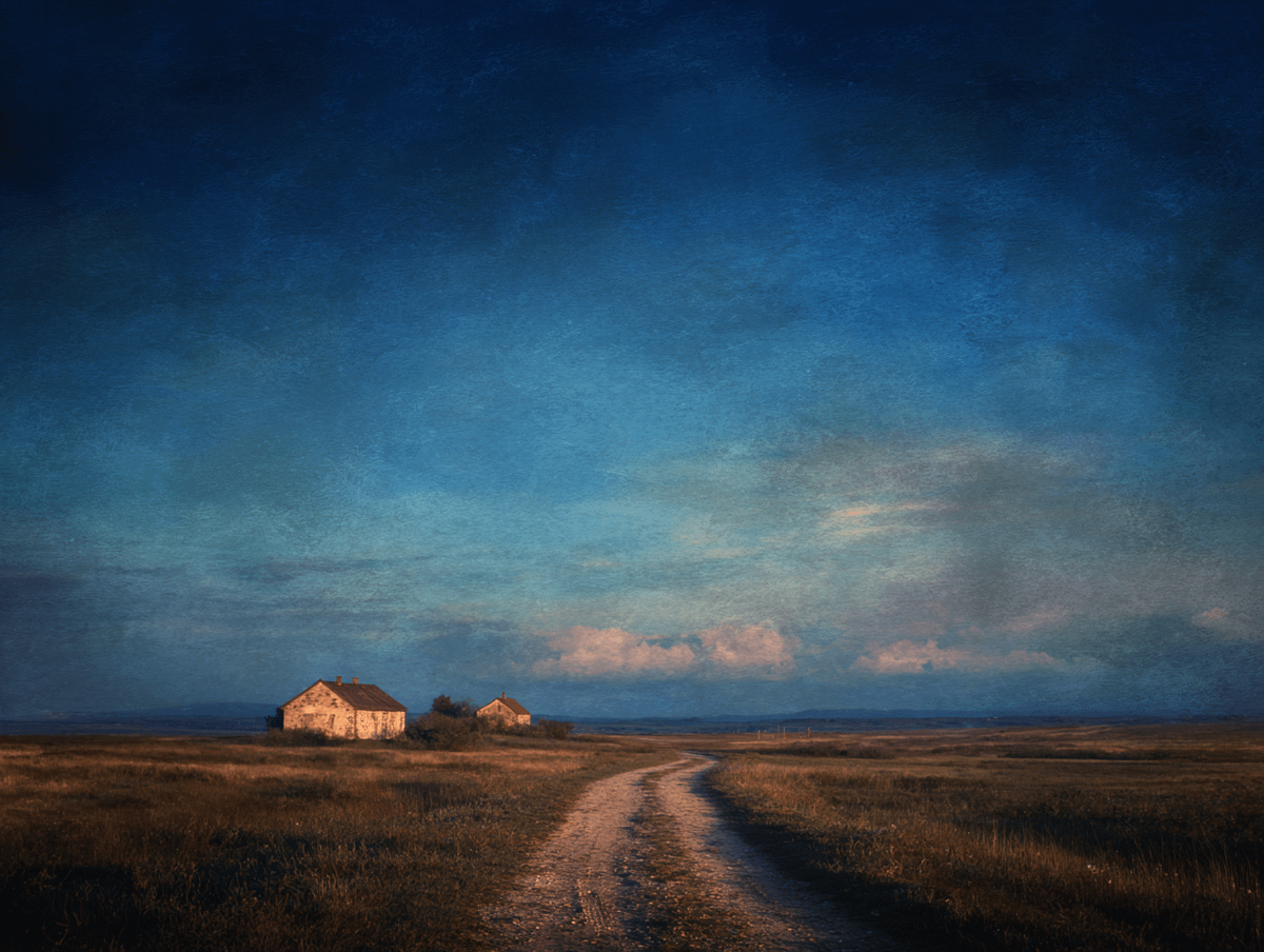 Country Road Leading to the Distance Peaceful Rural Landscape