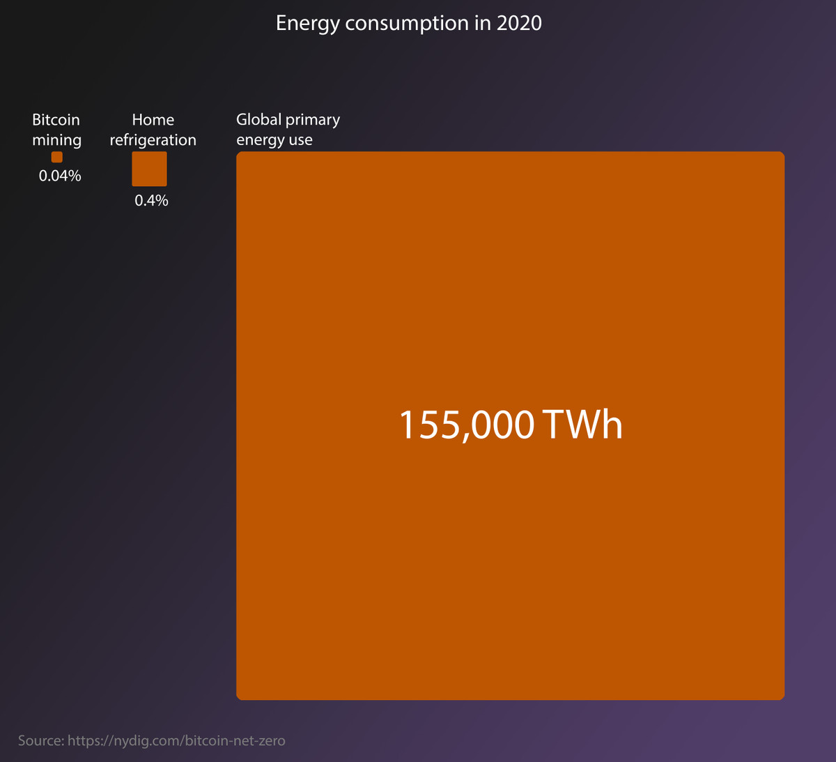 Zooming out, we see that Bitcoin mining uses only 0.04% of all energy consumed globally.