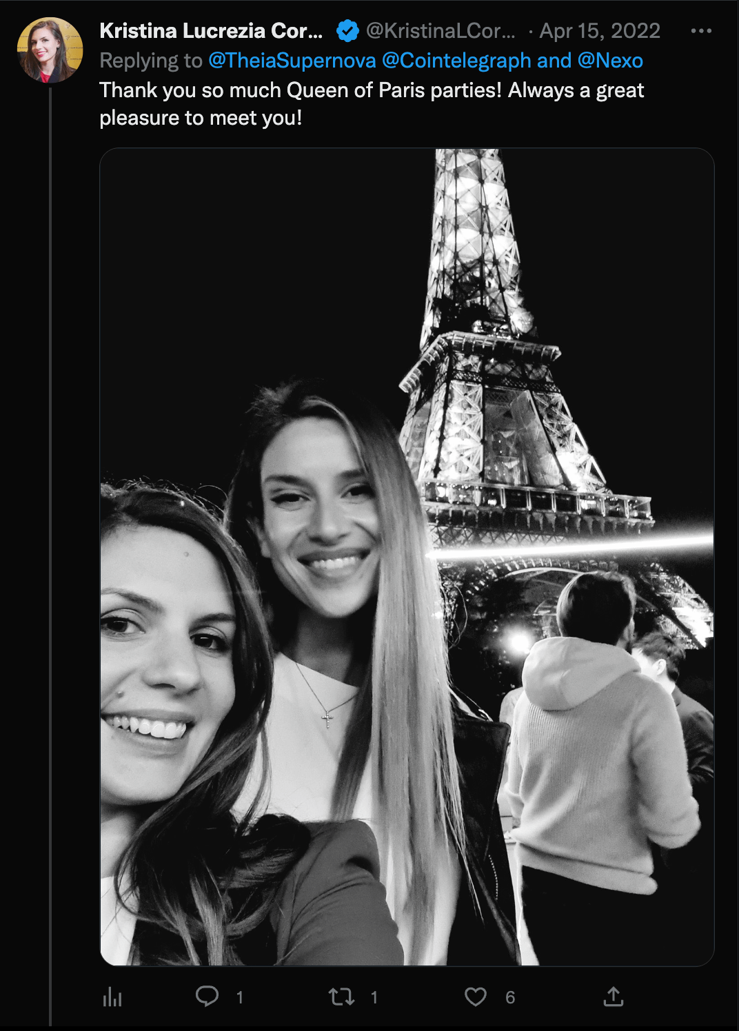or Teodora with Cointelegraph here at the Eiffel Tower, Paris