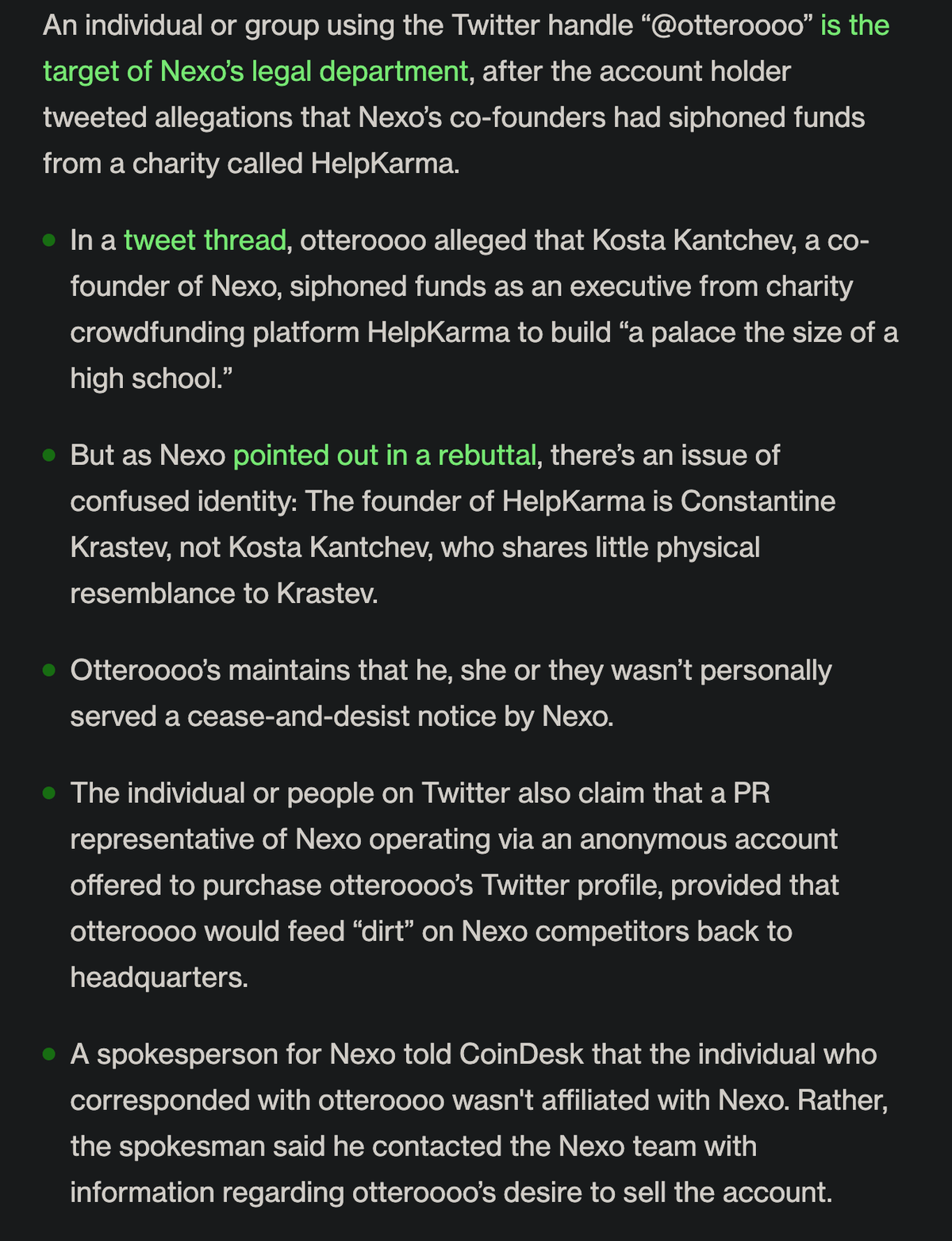 it seemed that Cointelegraph was a tad biased towards Nexo to otter