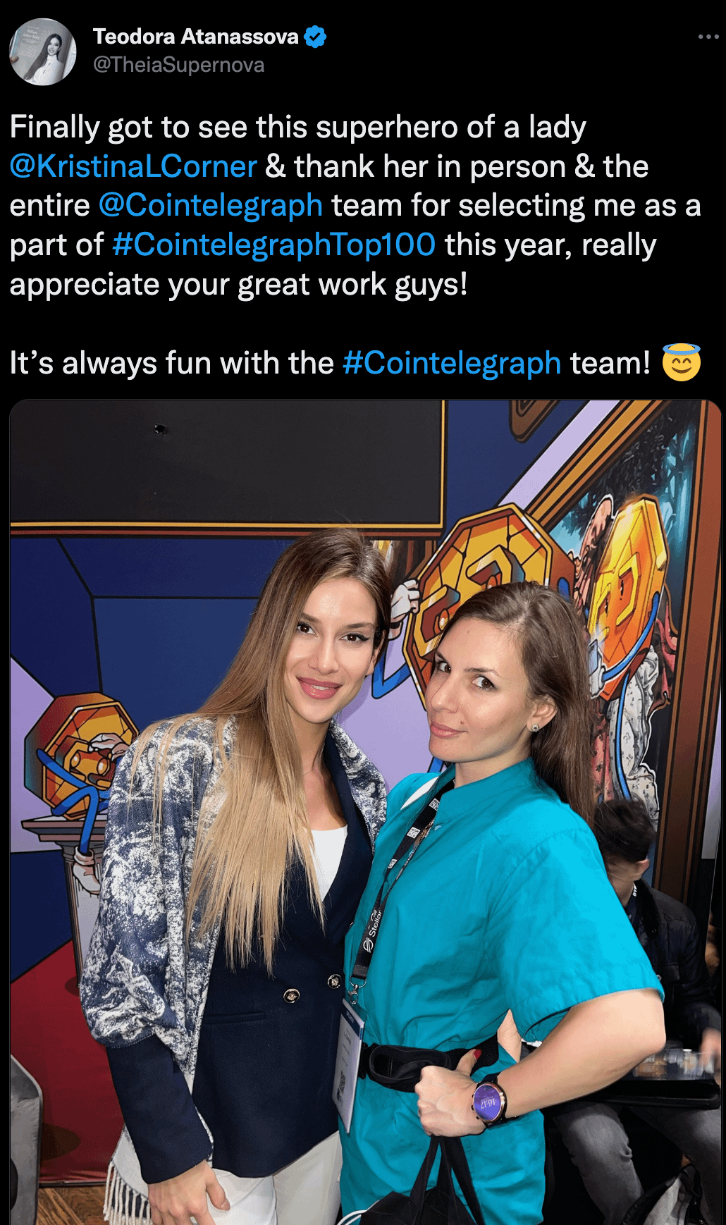 or how about the time @Cointelegraph EDITOR IN CHIEF @KristinaLCorner selected Teodora for the #CointelegraphTop100