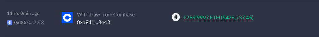 1 hour after the transfers above, Wintermute *coincidentally* receives $426,000 worth of ETH from Coinbase