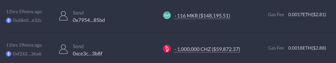 to give a fuller picture of Wintermute’s transactions of that very same day, it seems that $MKR and $CHZ were not spared either