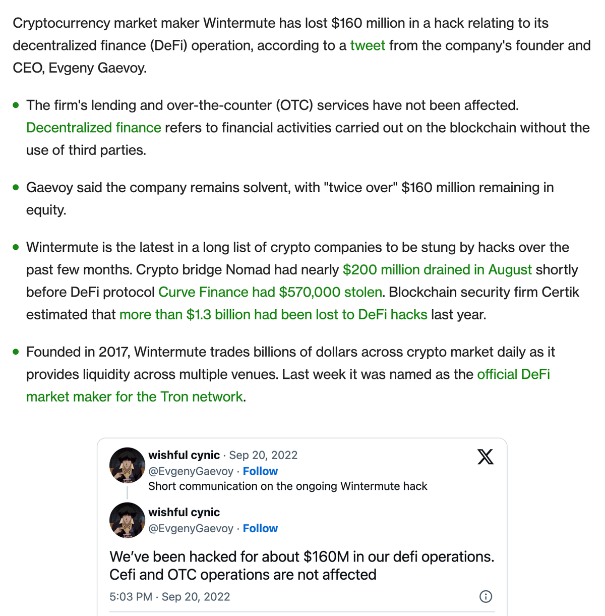 the tokens were cunningly sent not through the main Wintermute address but through a proxy address