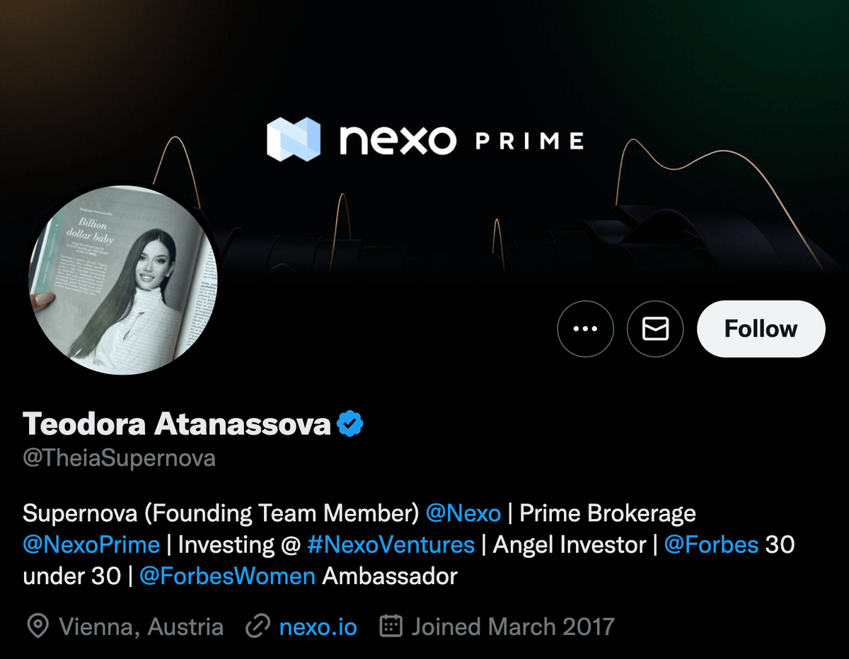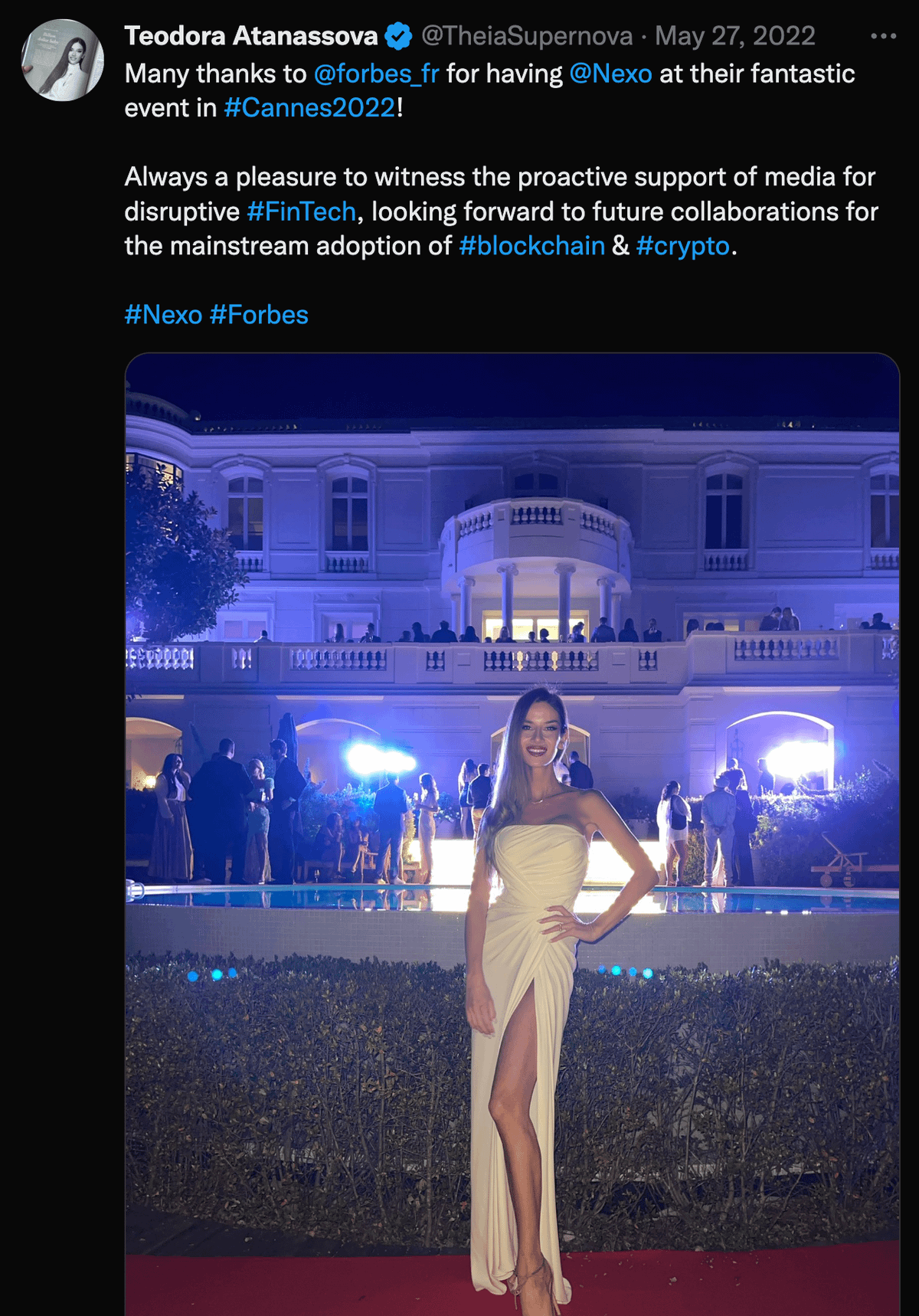 Teodora would travel the world for crypto conferences on behalf of Nexo