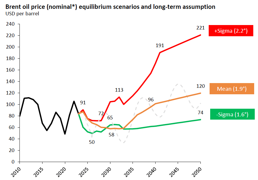 Increasing equilibrium oil prices in all scenarios in the long-term