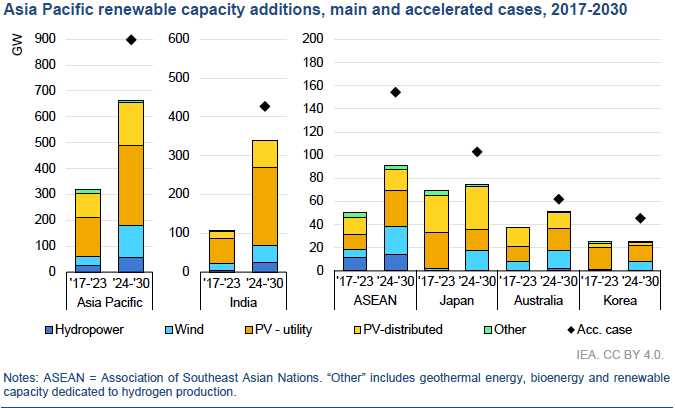 Renewable energy capacity in Asia Pacific (excluding China) is expected to