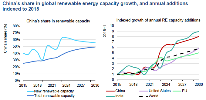 Since 2015, China’s share in global annual capacity additions has been increasing and is expected to reach almost 60% in 2030.
