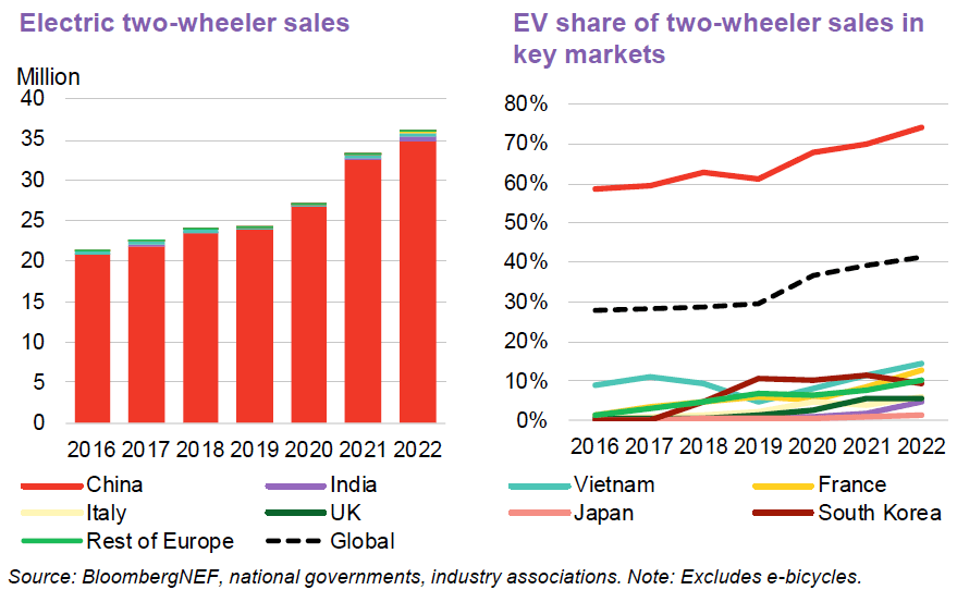 One sector where Asia has made considerable progress is electric 2/3-wheelers, which are most popular mode of transportation in most countries.