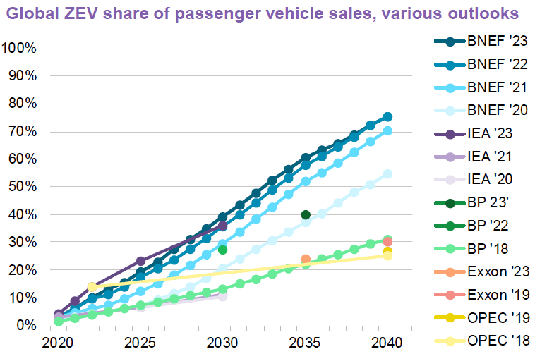 51/Forecasters consistently under-estimate growth of zero-emissions vehicles.
