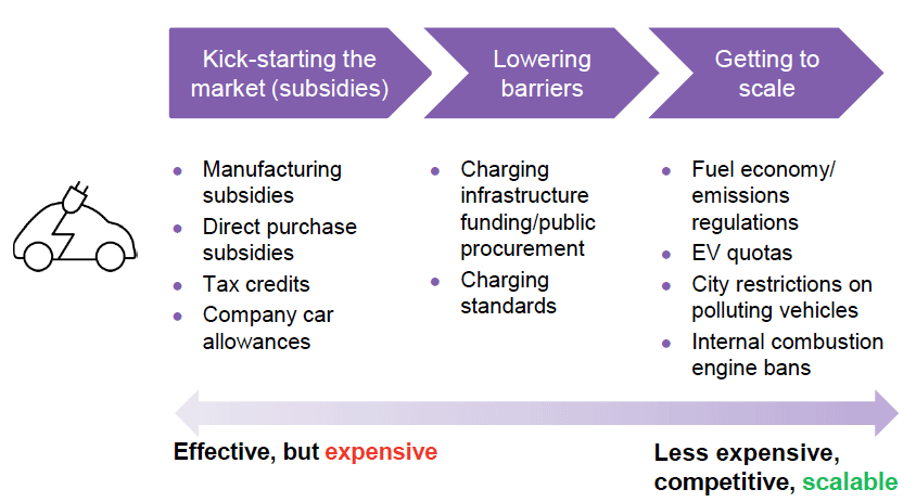 32/Policy has played an key role in the development and adoption of clean energy technologies like EVs.
