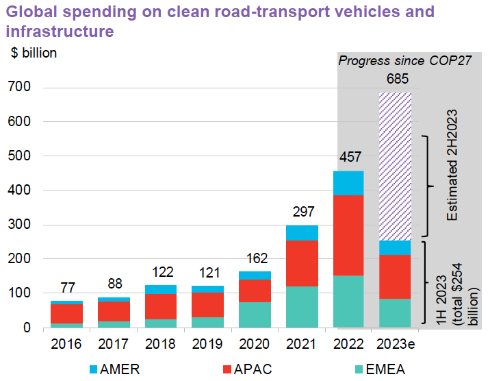 33/Global spending on clean road-transport vehicles/infrastructure: