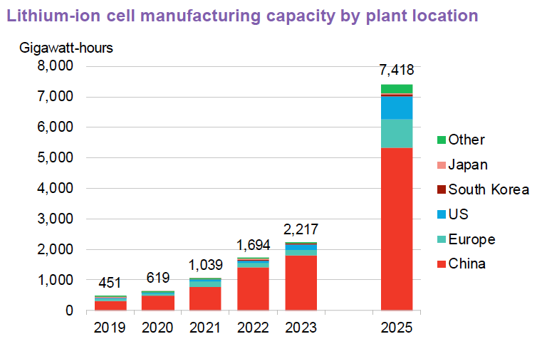 Battery manufacturing capacity has increased 31% since 2022