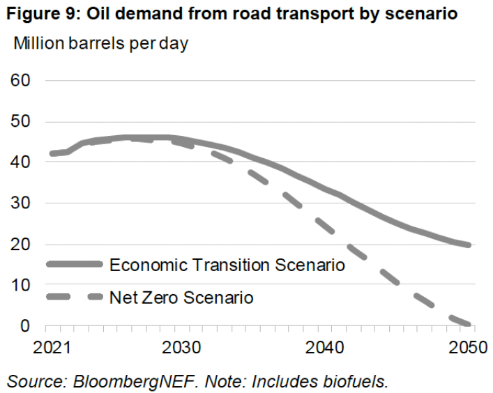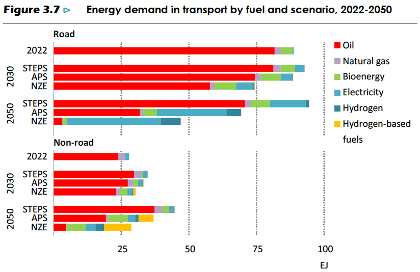 IEA is now calling for peak oil demand in road transport by 2030 in all scenarios.