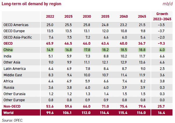 OPEC forecast growth of 4 million b/d by 2045.