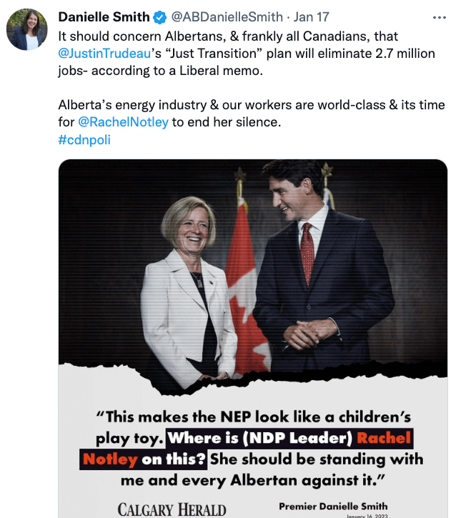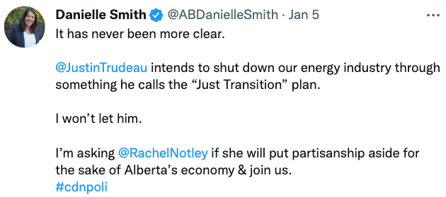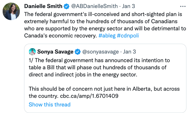 1/This 🧵 is about @ABDanielleSmith's claim that the Canadian govt plans to phase out Alberta oil/gas as part of its Just Transition strategy.