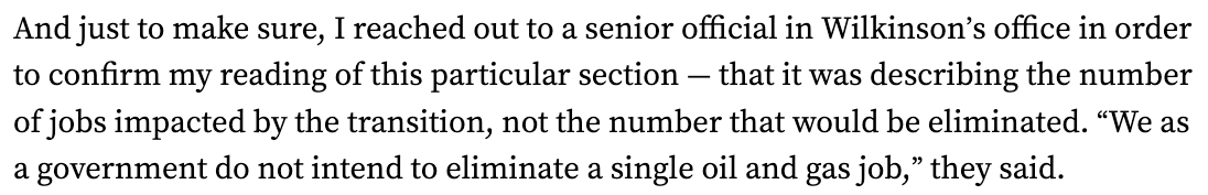 What the brief actually said is that that jobs would be "affected," not eliminated. We're in the middle of a rapidly accelerating global energy transition, so yeah, affected jobs.