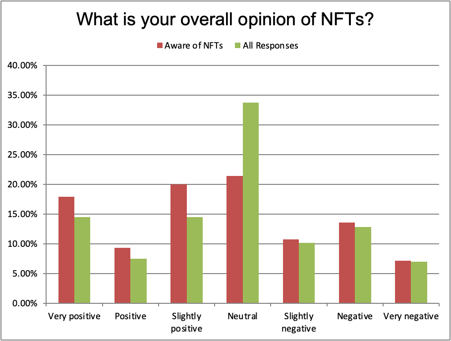 Now let's see what happens if we compare those who reported aided awareness of NFTs against all responses...