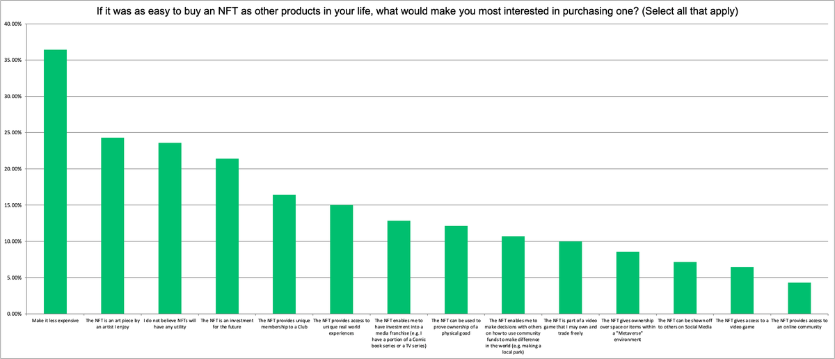2) Art drives the most interest among gen pop for NFTs (hmm).