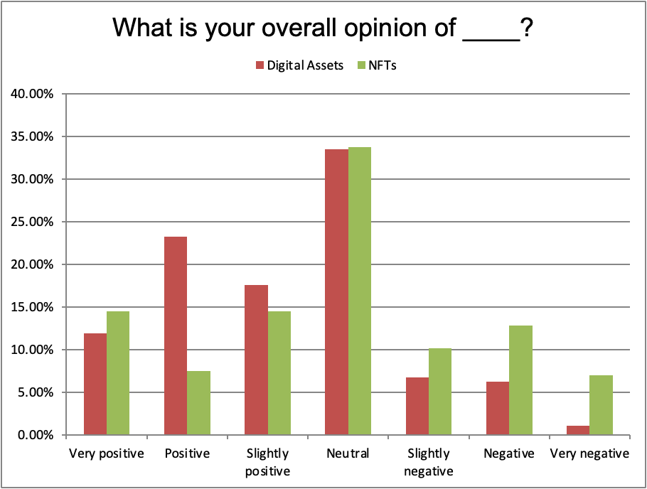 30% negative perception of NFTs vs 14% negative perception of "digital assets."