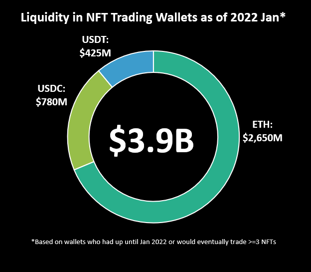 Well let's just look at their wallets... probably should have done this first! The wallets that satisfied our criteria had over $3.9B in LIQUID assets IN their wallet in Jan 2022. This is ONLY looking at USDC/T and ETH.
