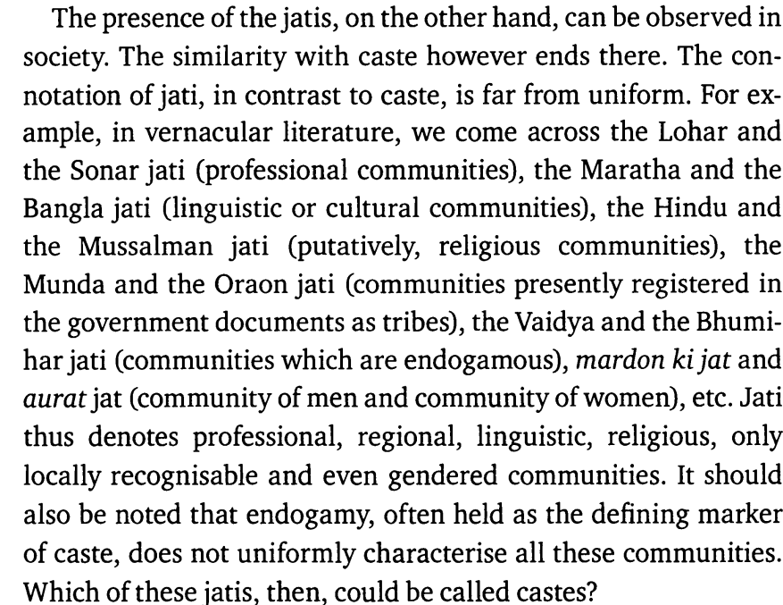 jāti is undoubtedly polysemous and refers to an entity that is neither discreet nor homogeneous. One is bound to fail, if one employs this as a unit of caste classification for an arbitrary person.