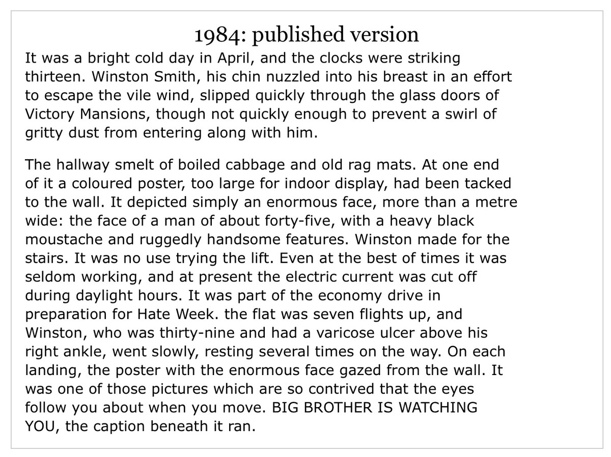 This is an adaptation from ‘Nineteen Eighty-Four: The Facsimile of the Extant Manuscript’