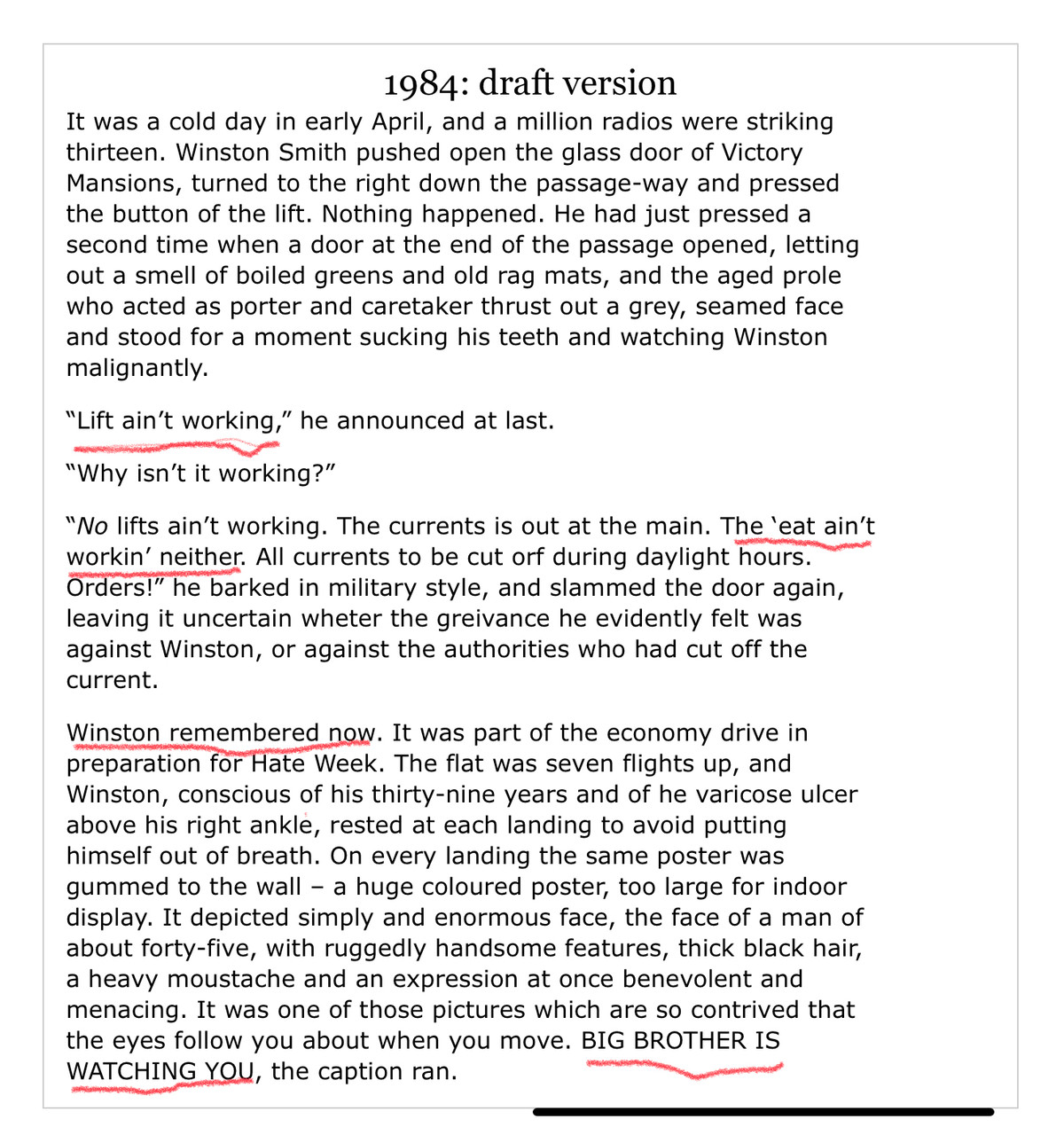 But it’s so much more … and George Orwell’s writing process does not disappoint